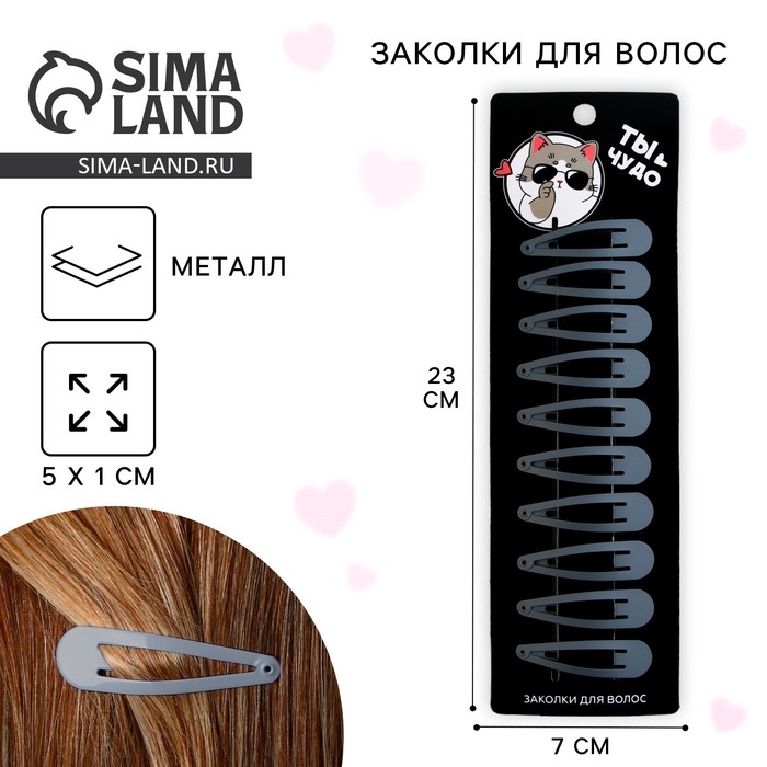 Заколки для волос детские «Ты чудо», 10 шт., 5 х 1 см