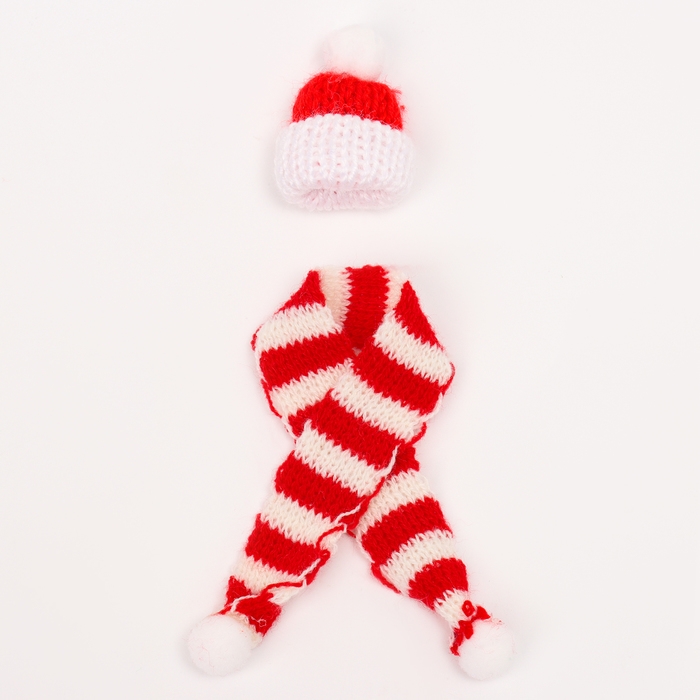 Вязаные шапка и шарфик для игрушек «Зимнее настроение»