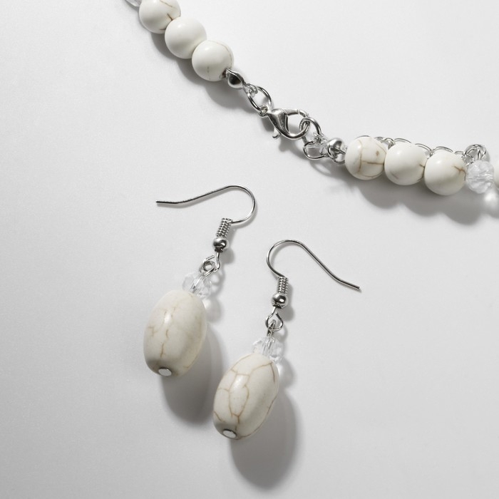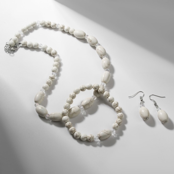 Набор 3 предмета: серьги, бусы, браслет «Натурель», бусины №8, цвет белый, 42 см