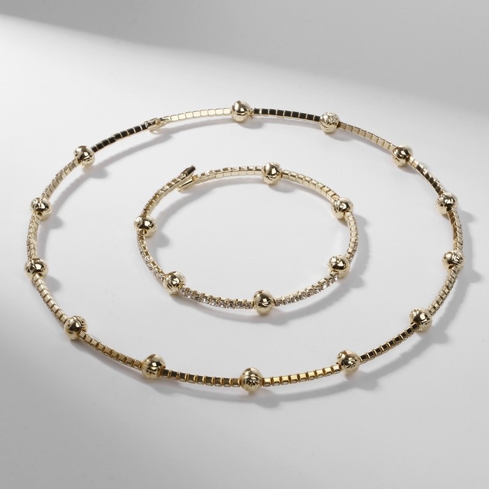 Набор 2 предмета колье, браслет «Ноэль» бусины №6, цвет белый в золоте