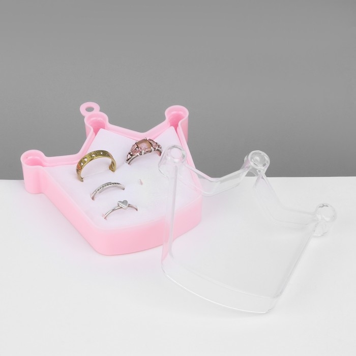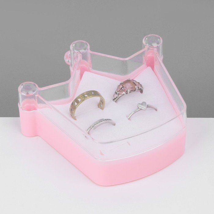 Органайзер для украшений «Шкатулка корона» 6 мест, пластик, 9,5×9×3 см, цвет розовый