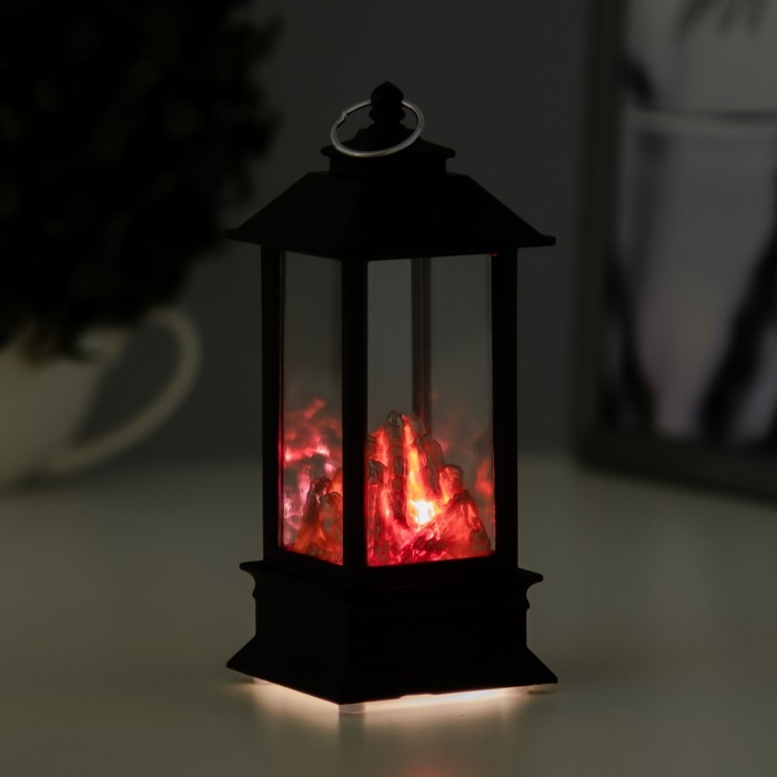 Ночник "Фонарь с углями" LED от батареек 3хLR44 черный 5,5х5,5х13 см