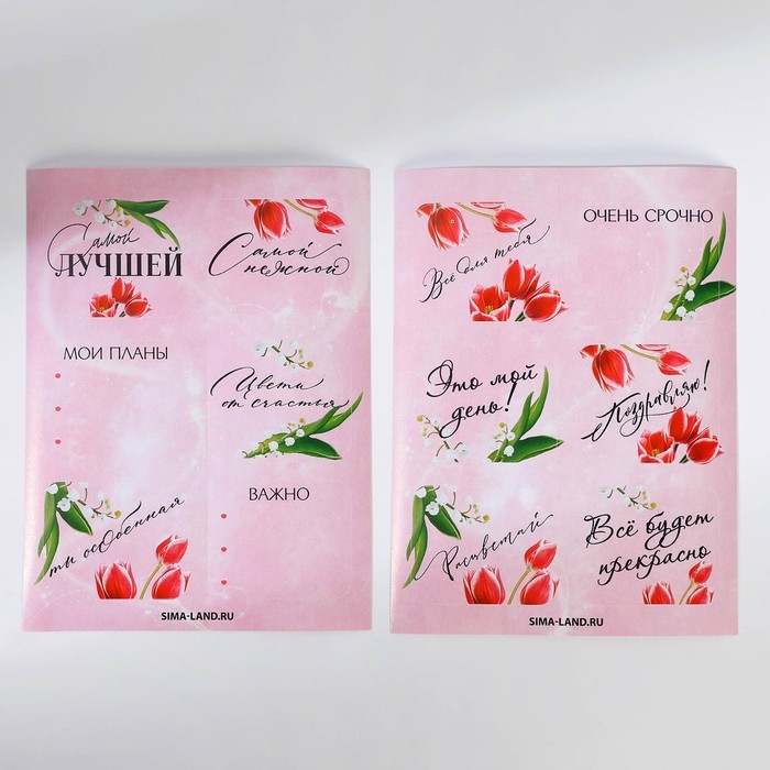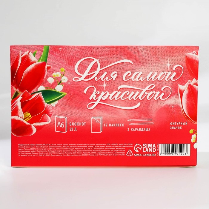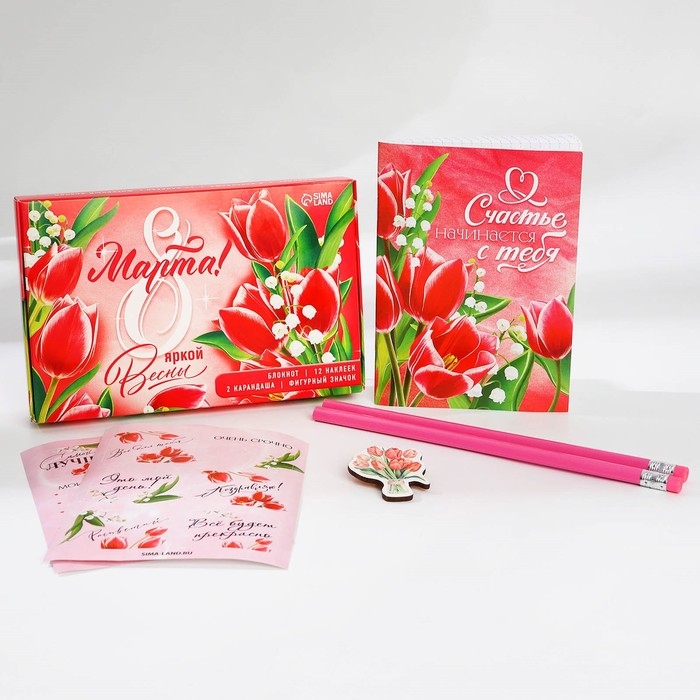 Подарочный набор «8 марта» блокнот А6, значок, наклейки и карандаши 2 шт