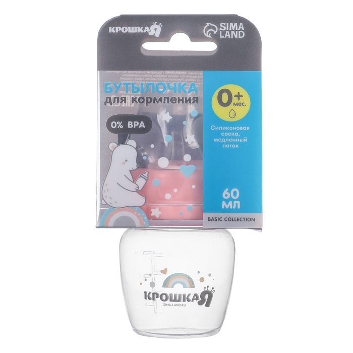 Бутылочка для кормления, классическое горло, 60 мл (мерная шкала до 40мл) Basic, 0+ мес., цвет розовый