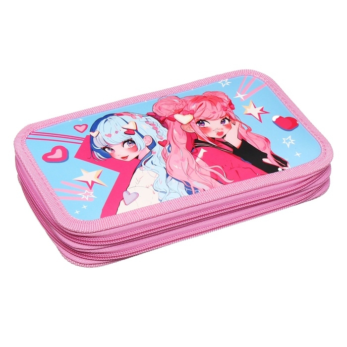 Пенал 2 секции, 125 х 205 х 40 мм, Calligrata 30П26/2 "Аниме подружки", ламинированный картон