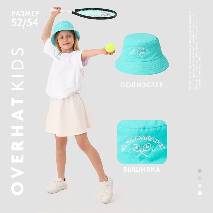 Панама детская для девочки «Ракетки», цвет бирюзовый, р-р 54