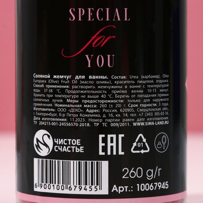 Жемчуг для ванны «Только для тебя», 180 г, аромат клубники со сливками, ЧИСТОЕ СЧАСТЬЕ