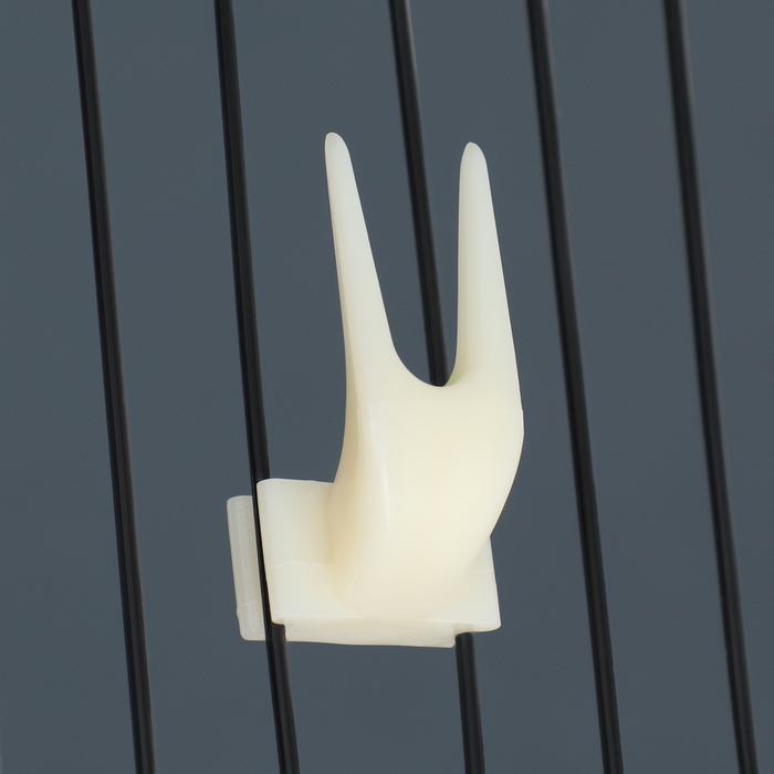 Эта вилка предназначена для кормления птиц фруктами. Она имеет специальное крепление, которое позволяет надежно зафиксировать ее на прутьях клетки. Вилка изготовлена из качественного материала, который устойчив к воздействию влаги и легко моется. Длина и ширина вилки составляют 2,2 х 4,2 см соответственно. В комплект входит пять вилок. Такой набор будет удобен при содержании нескольких птиц одновременно.