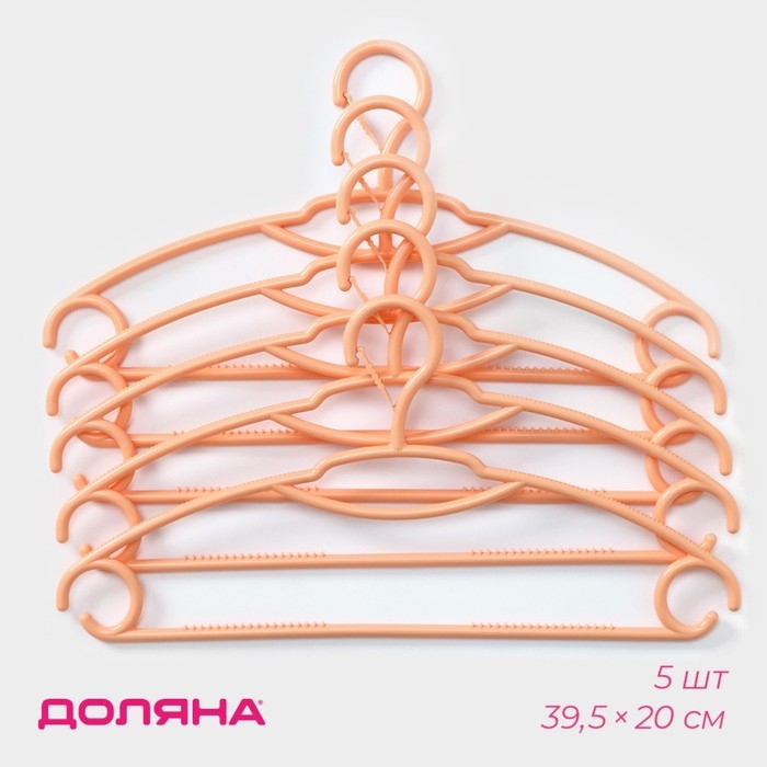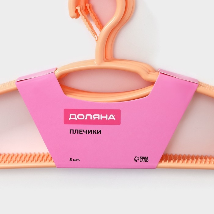 Плечики - вешалки для одежды, 39,5×20 см, 5 шт, детские, фиксатор на крючке, цвет оранжевый