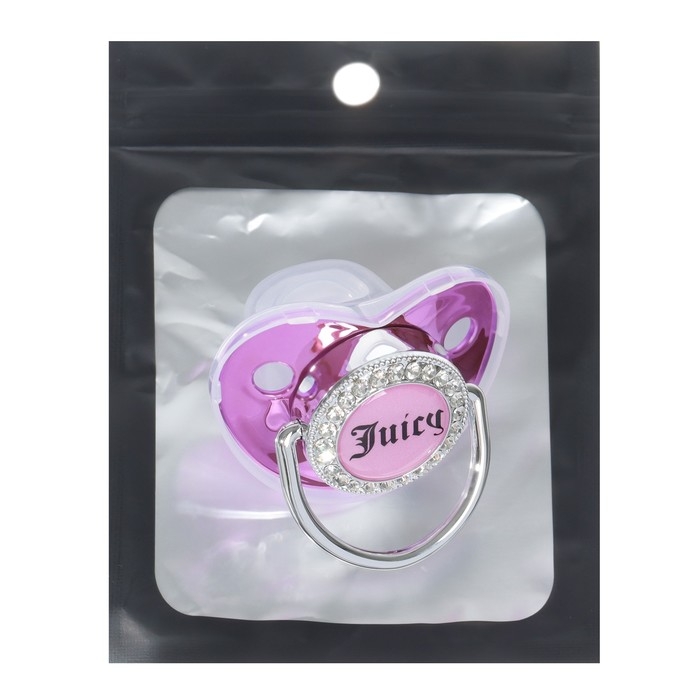 Соска - пустышка силиконовая ортодонтическая «JUICY», от 12 мес., с колпачком, цвет розовый/серебро, стразы