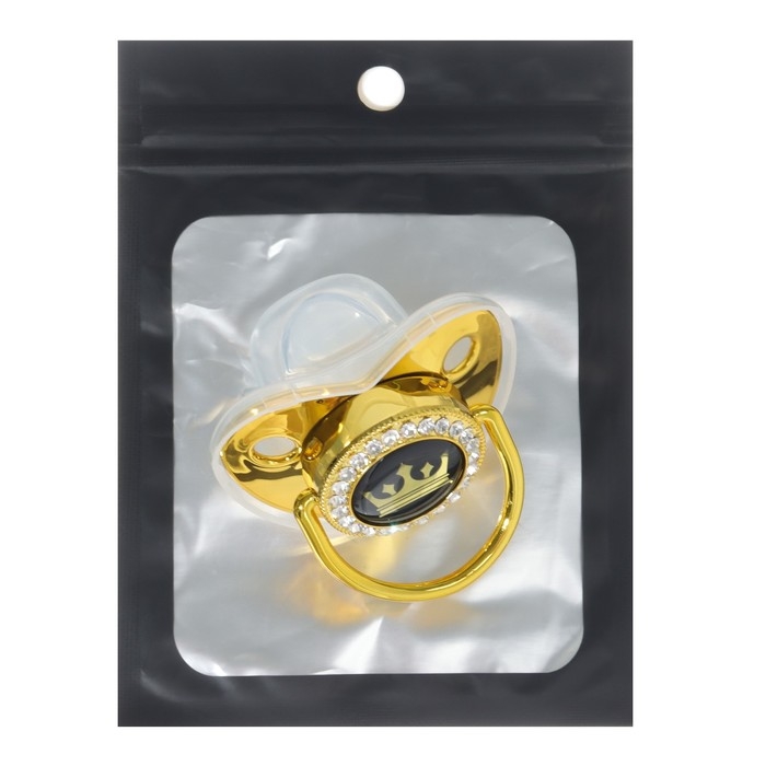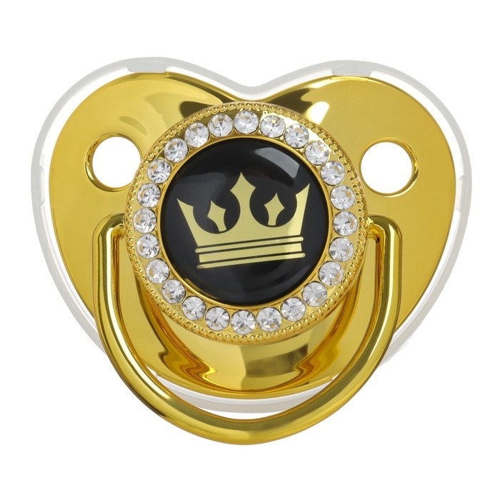 Соска - пустышка силиконовая ортодонтическая «Корона», от 12 мес., с колпачком, цвет золотой/черный, стразы
