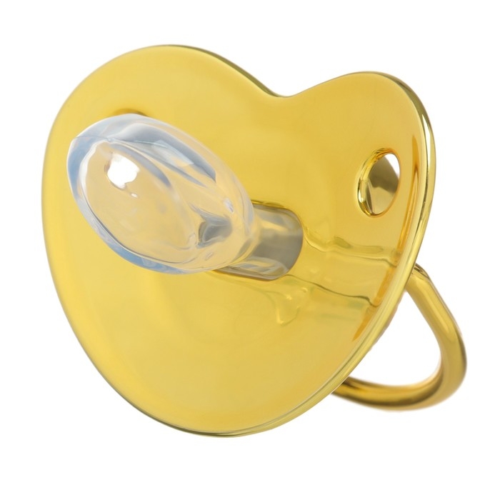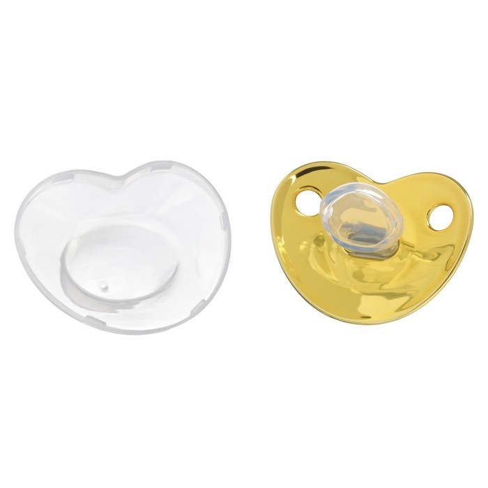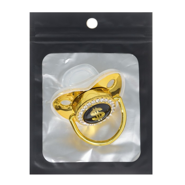 Соска - пустышка силиконовая ортодонтическая «Доллар», от 12 мес., с колпачком, цвет золотой/черный, стразы