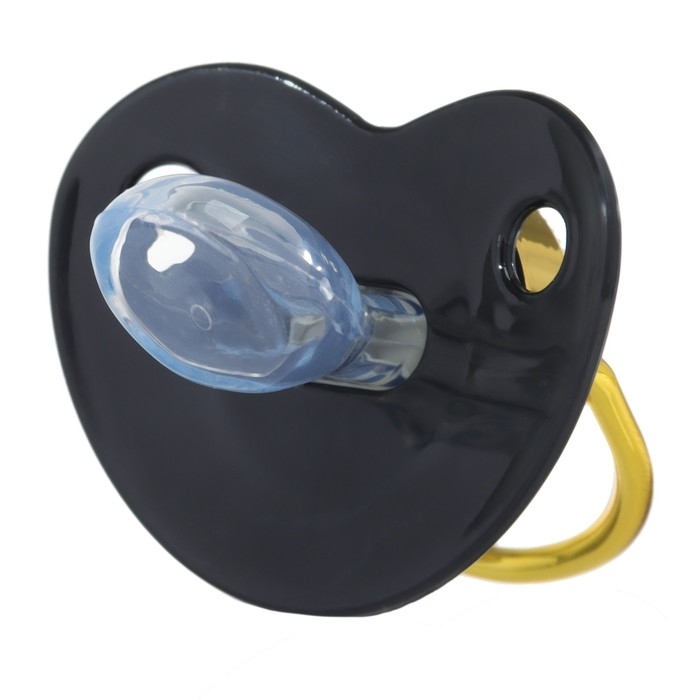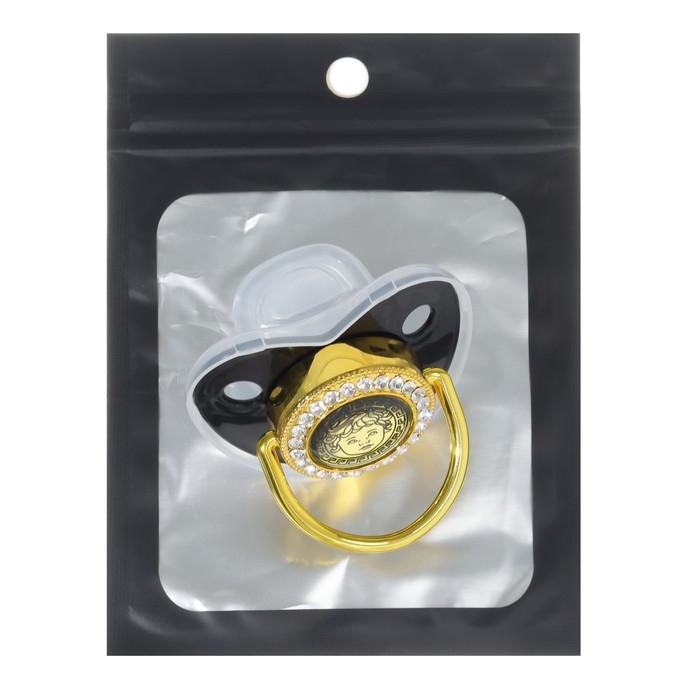 Соска - пустышка силиконовая ортодонтическая «Наш ангел», от 12 мес., с колпачком, цвет черный/золото, стразы