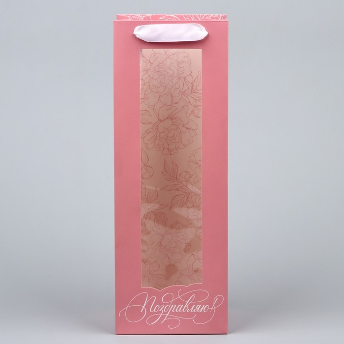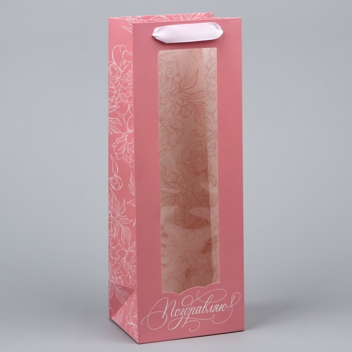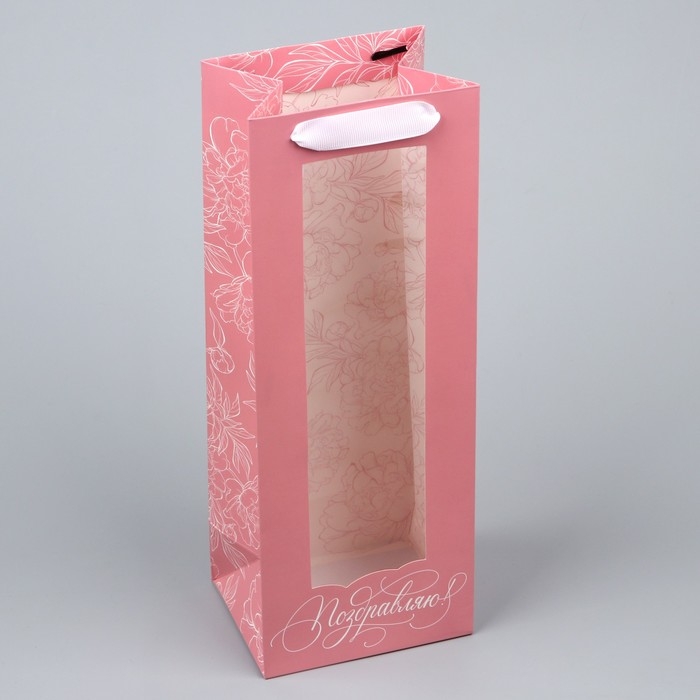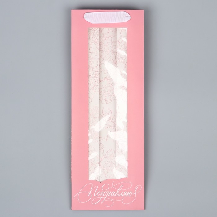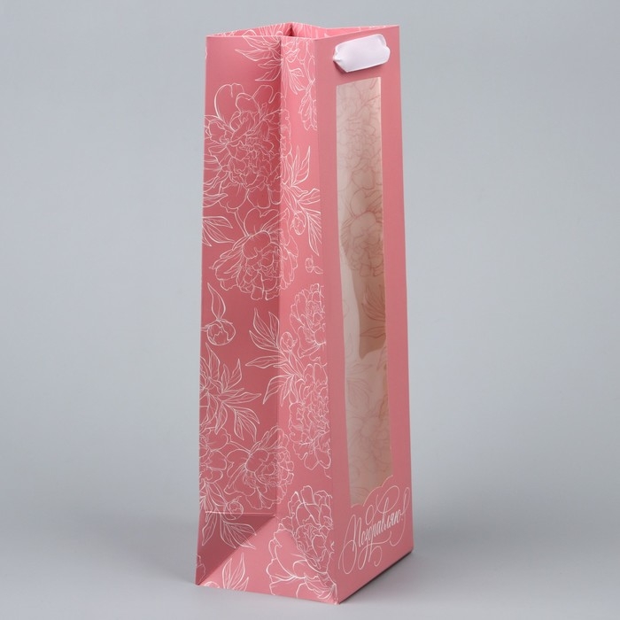 Пакет подарочный под бутылку, упаковка, «Поздравляю», 36 х 13 х 10 см