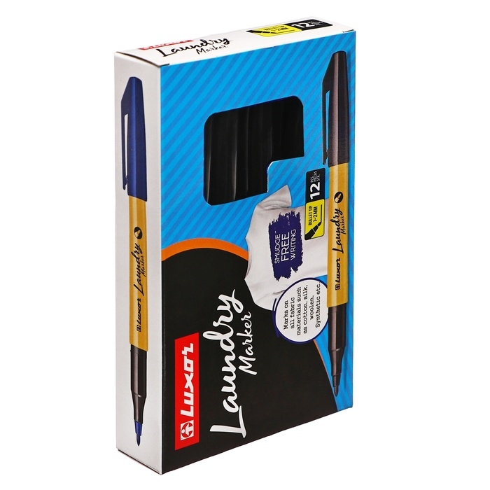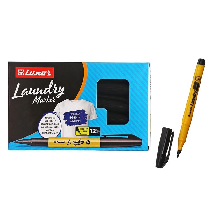 Перманентный маркер для ткани Luxor "Laundry"имеет толщину линии 1- 2 мм. Идеально подходит для маркировки одежды.Может с успехом использоваться в дестких , медицинских учреждениях, воинских частях , а также в прачечных. Идеален для дизайнеров по текстилю. Подходит для нанесения маркировки на текстиле как в повседневной жизни- в быту, так и на производствах. Цвета автоматически закрепляются через 24 часа, или после глажки. Не смазывается при стирке до 90 градусов, не токсичен. Просто и надежно маркирует одежду ! Маркер имеет круглую форму корпуса и водостойкие высокопигментированные чернила на спиртовой основе. Безопасен в применении. Цвет чернил-черный.