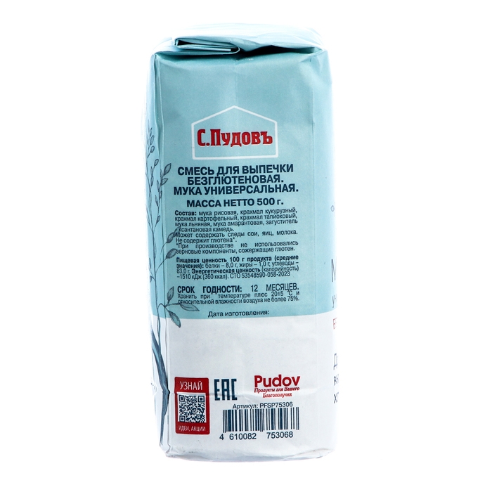 Универсальная мука без глютена «С. Пудовъ» создана специально для тех, кто придерживается безглютеновой диеты, но не отказывает себе во вкусной и ароматной домашней выпечке. Универсальная мука без глютена подходит для ваших любимых рецептов выпечки и может служить альтернативой традиционной пшеничной муке. Данный вид муки - идеальная основа для хлеба, пирогов, кексов, оладий и блинов.