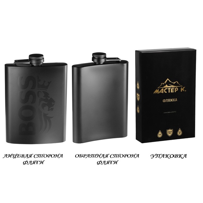 Фляжка для алкоголя "BOSS", нержавеющая сталь, подарочная, армейская, 240 мл, 8 oz