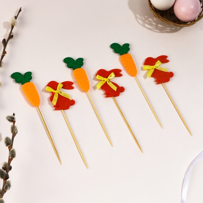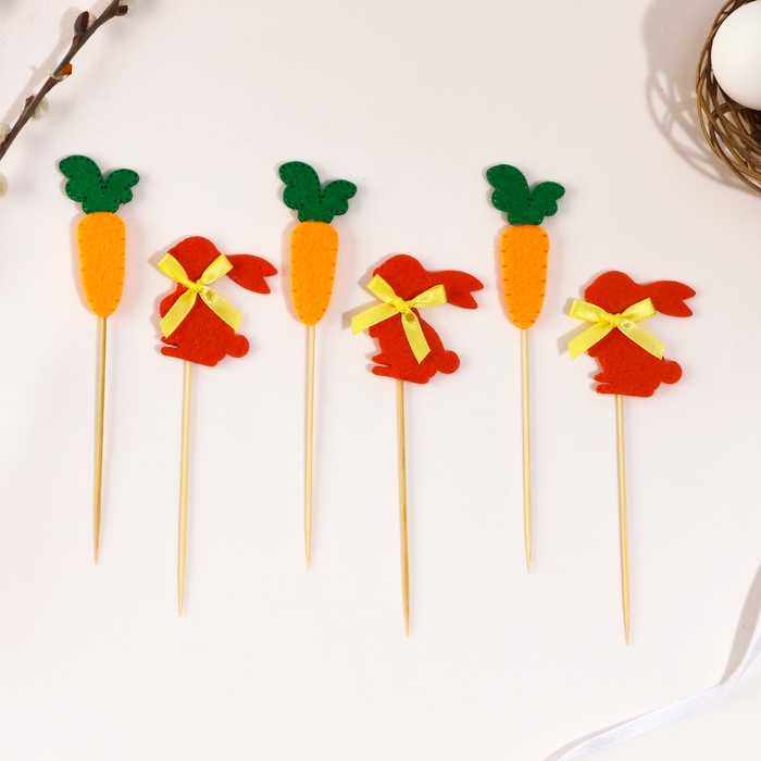 Топпер «Заяц», с цветочком и морковкой, набор 6 шт.