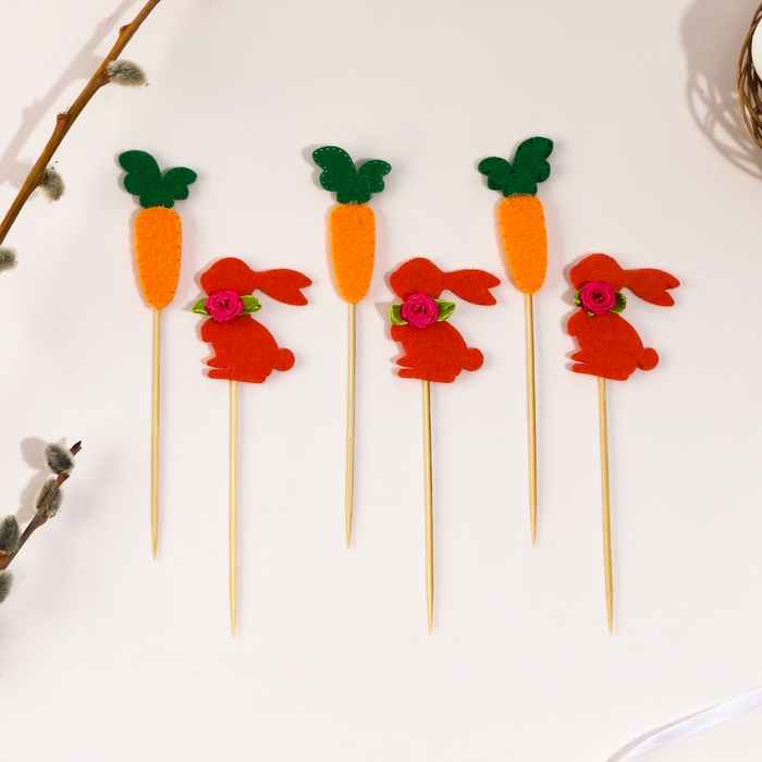 Топпер «Заяц», с бантиком и морковкой, набор 6 шт.