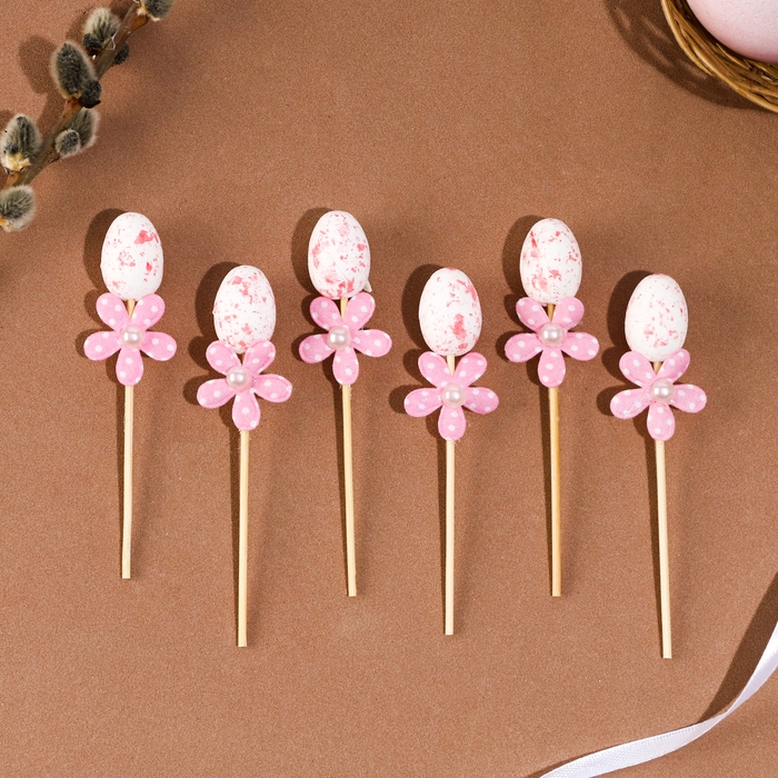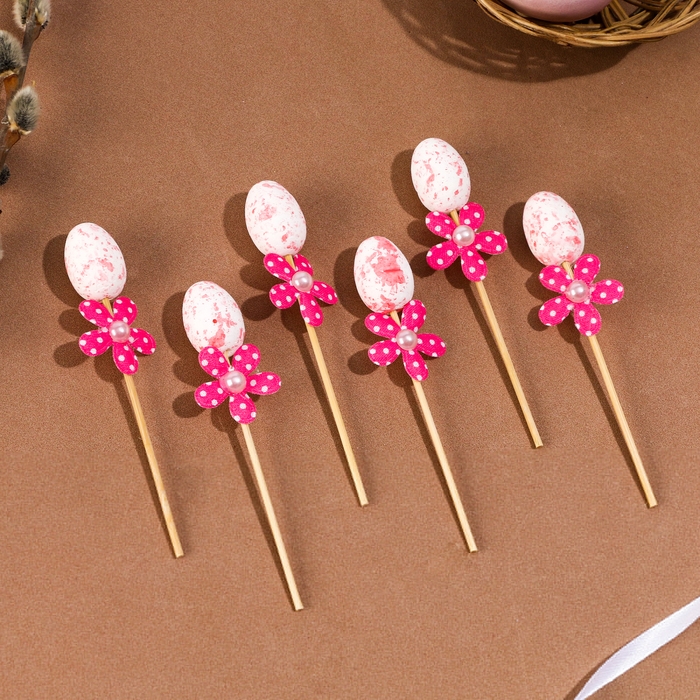 Шпажки яйцо цветочек розовый, набор 6 шт.