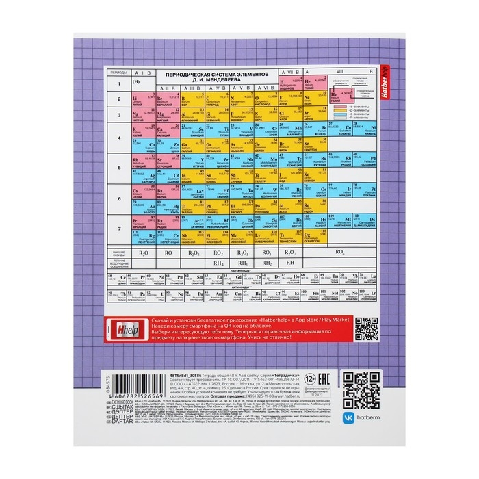Тетрадь предметная "Тетрадочка", 48 листов в клетку "Химия", обложка мелованный картон, выборочный лак, со справочным материалом