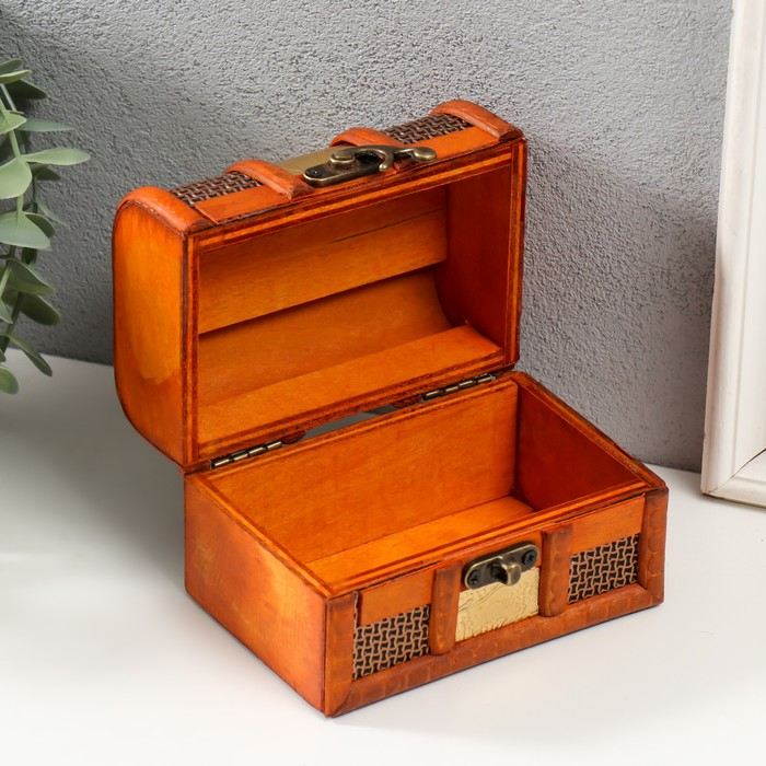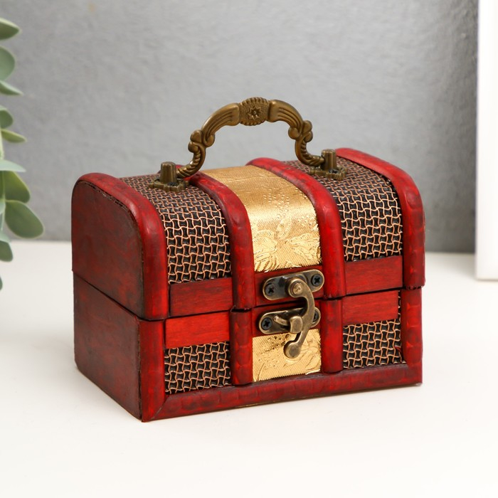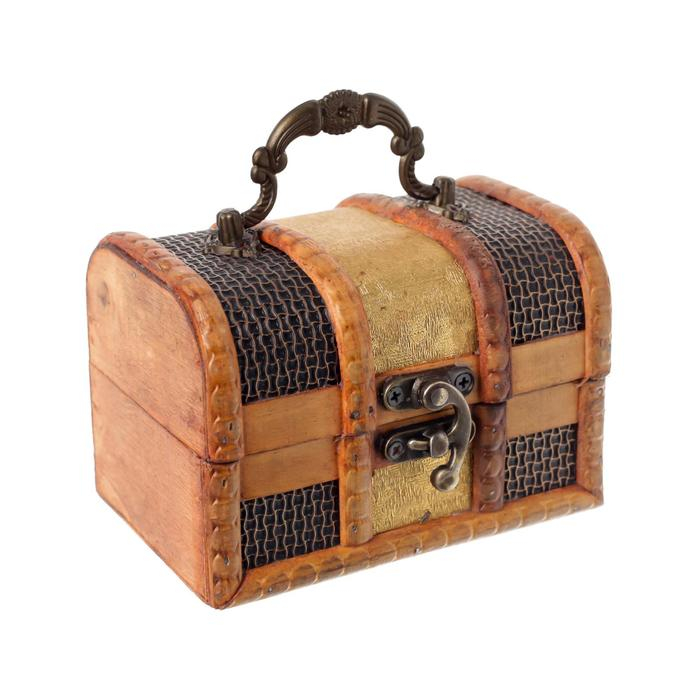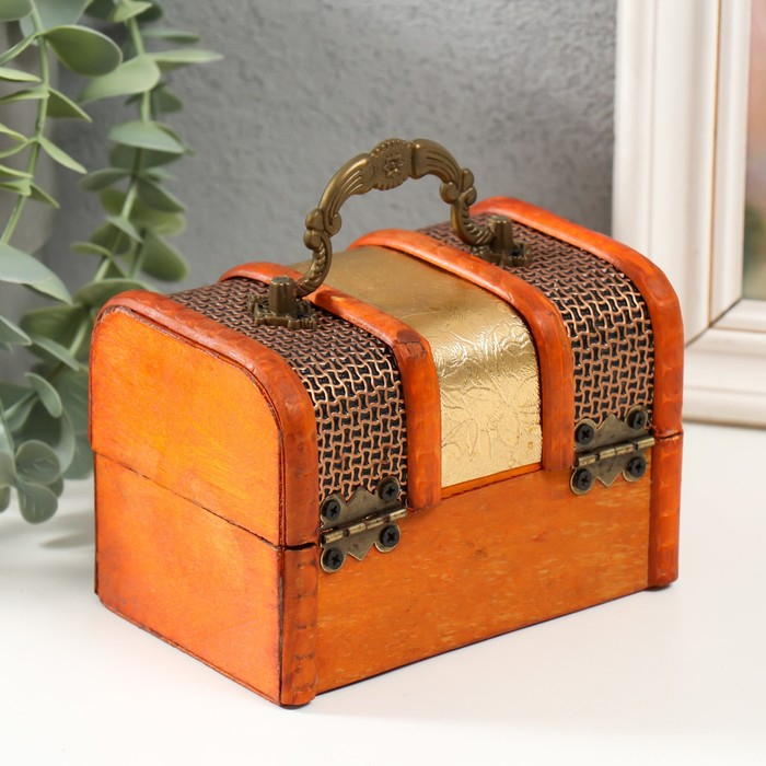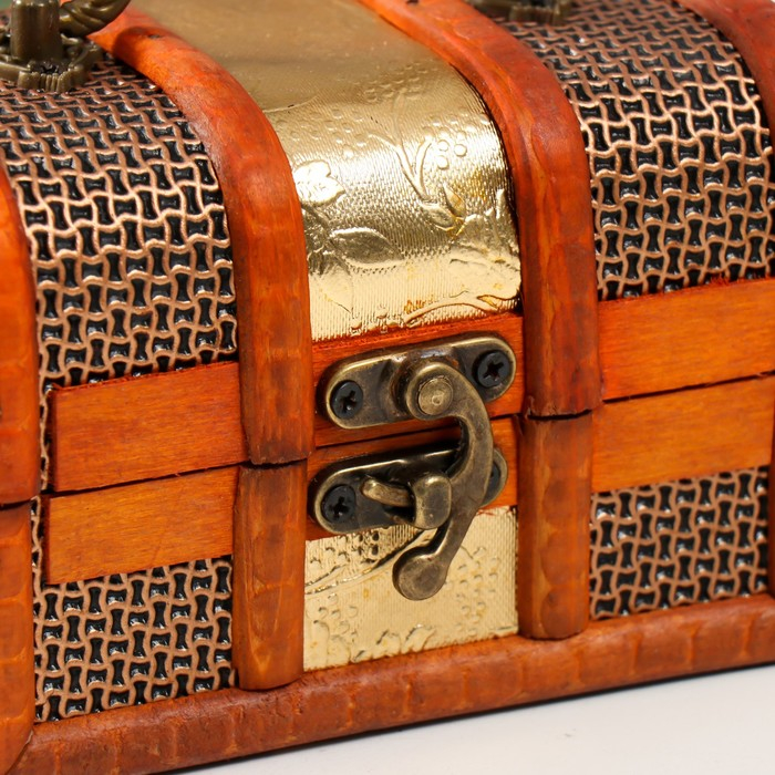 Шкатулка дерево сундучок "Золотая сеть и штукатурка" 8,5х12х8,5 см