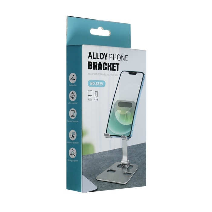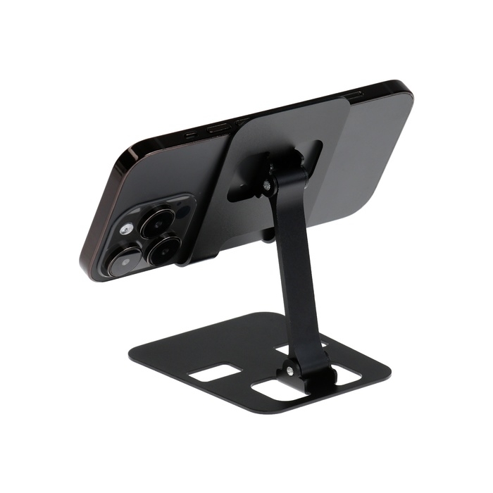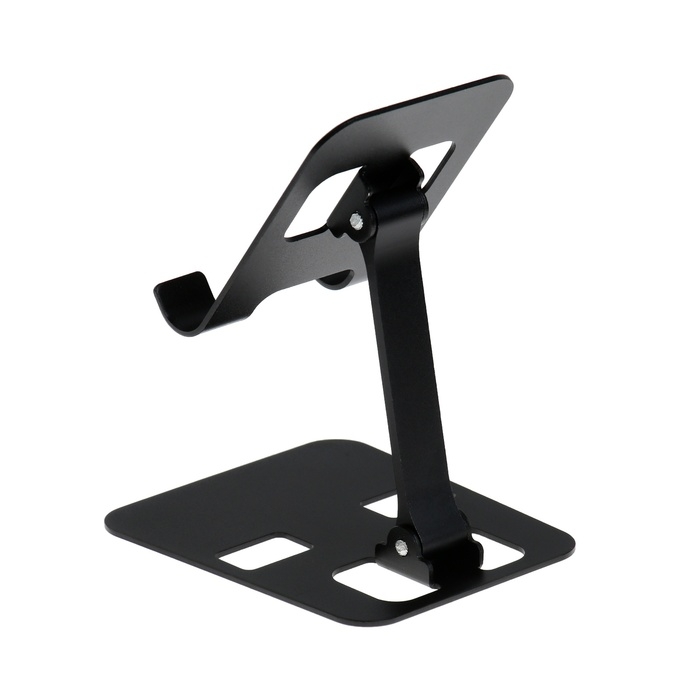 Подставка для телефона, регулируемая, складная, металл, резиновые вставки, чёрная