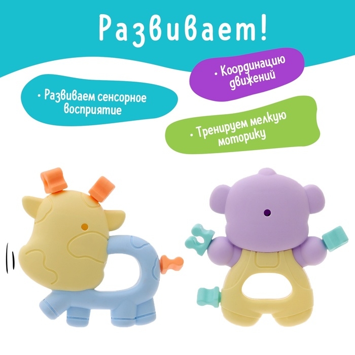 Набор прорезывателей для зубов «Забавные зверята», 2 шт.
