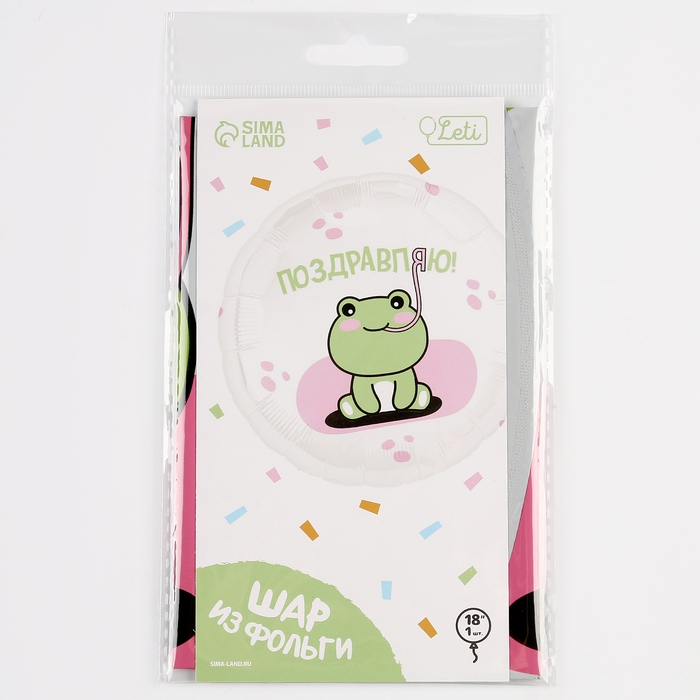 Фольгированный шар с надписью: «Поздравляю!» и принтом с лягушкой — дополнение, которое подойдёт к любому подарку для ребёнка! Вы можете взять несколько шаров и соорудить из них арку или гирлянду. Воздушные шары — простой и удобный способ оформить помещение для мероприятия.