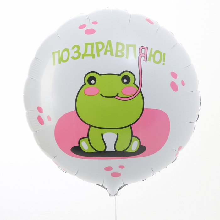 Воздушный шар фольгированный 18" «Поздравляю» лягушка, круг, с подложкой