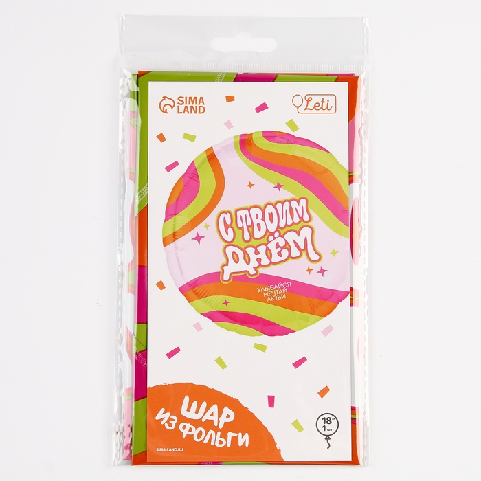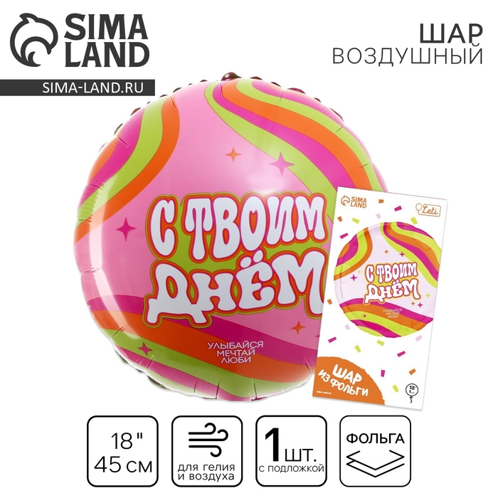 Воздушный шар фольгированный 18" «С твоим днём», круг, с подложкой