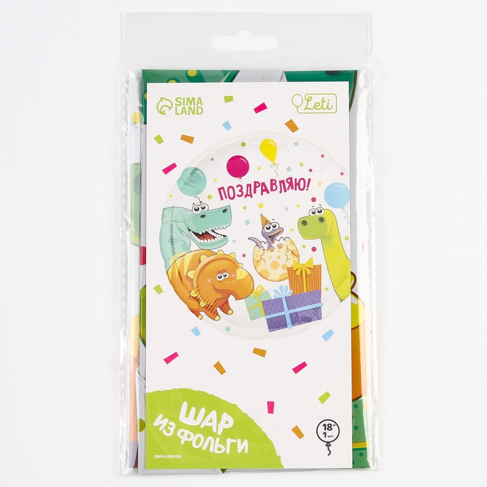 Фольгированный шар с надписью «Поздравляю!» с милыми динозаврами — дополнение, которое подойдёт к любому подарку для ребёнка! Вы можете взять несколько шаров и соорудить из них арку или гирлянду. Воздушные шары — простой и удобный способ оформить помещение для мероприятия.