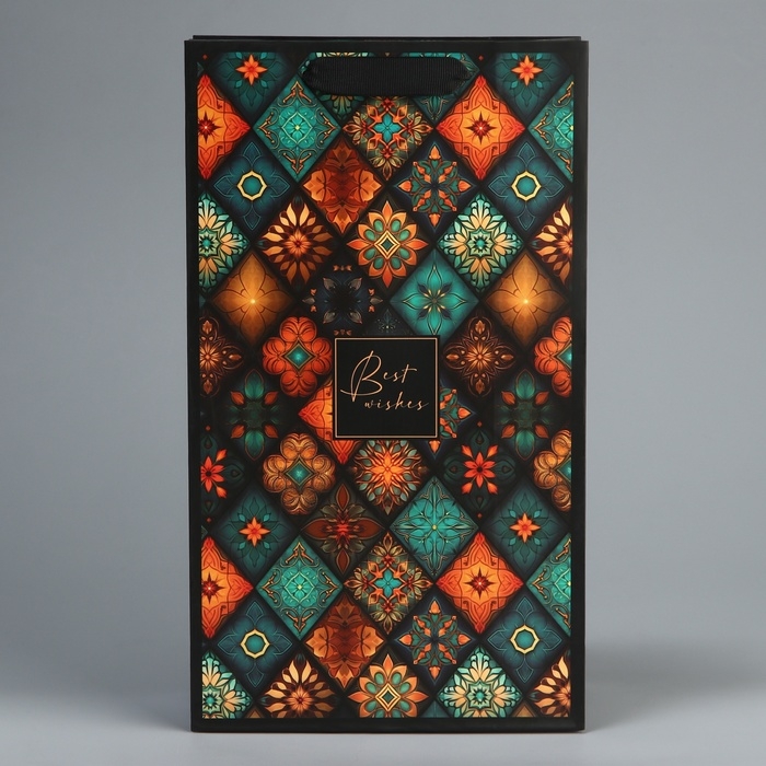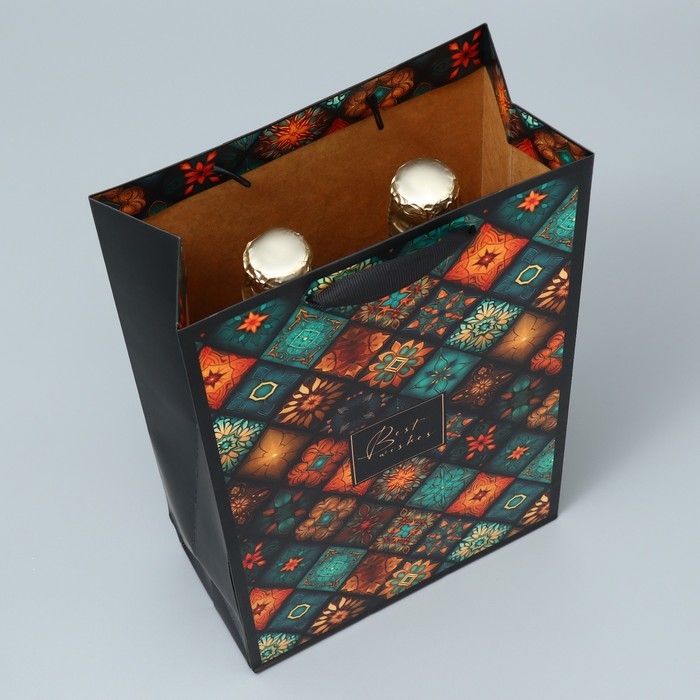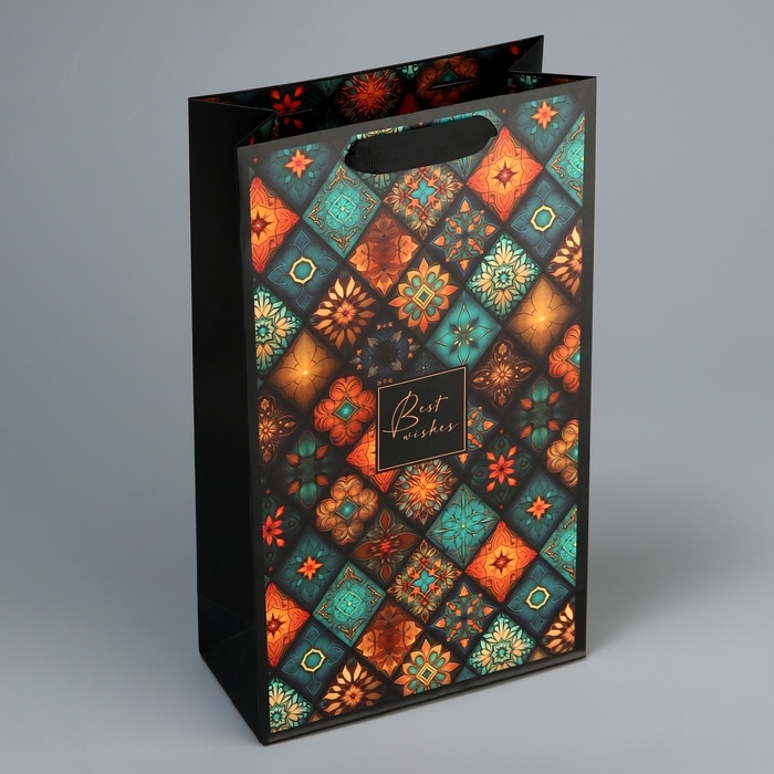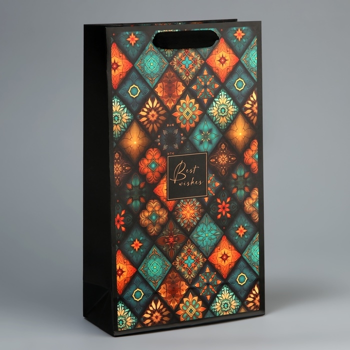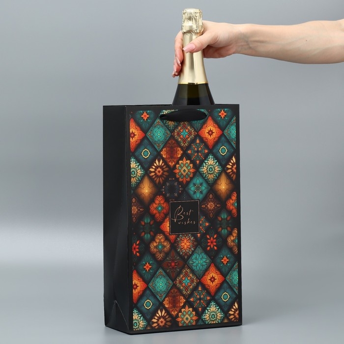 Пакет подарочный под две бутылки, упаковка, «Best wishes», 35 х 20 х 9 см