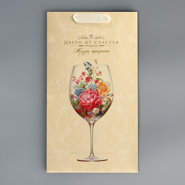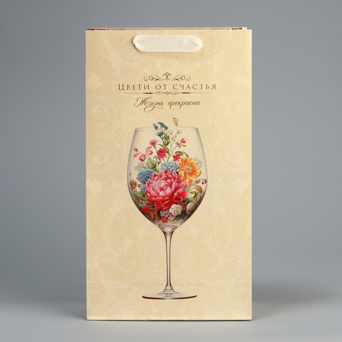 Пакет подарочный под две бутылки, упаковка, «Цвети от счастья», 35 х 20 х 9 см