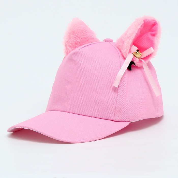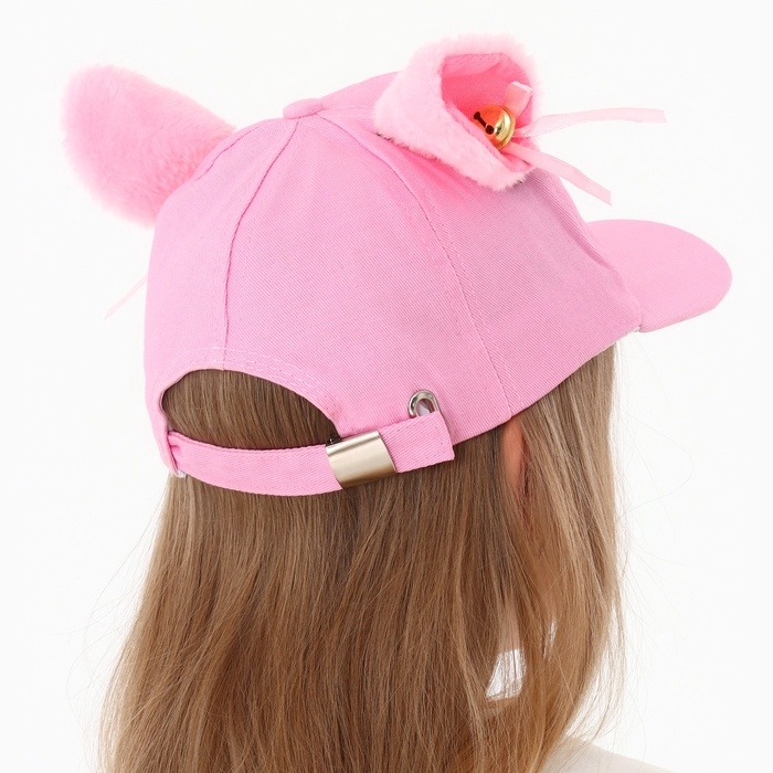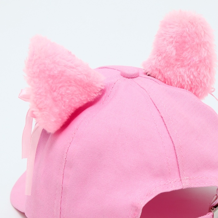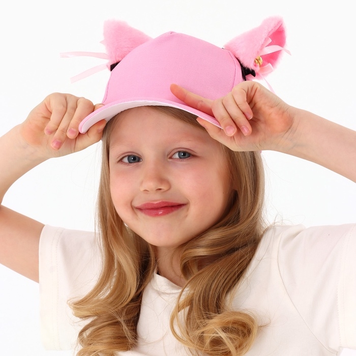 Кепка детская для девочки "Кошечка" с ушками, цвет розовый, р-р 52-54, 5-7 лет