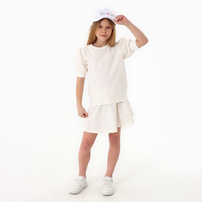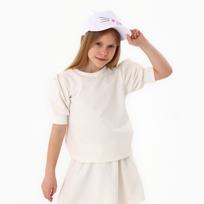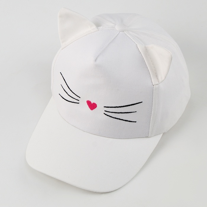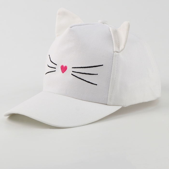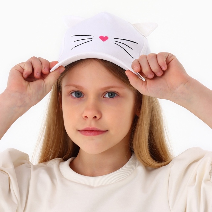 Кепка детская для девочки "Котик", с ушками, цвет белый р-р 52-54 5-7 лет
