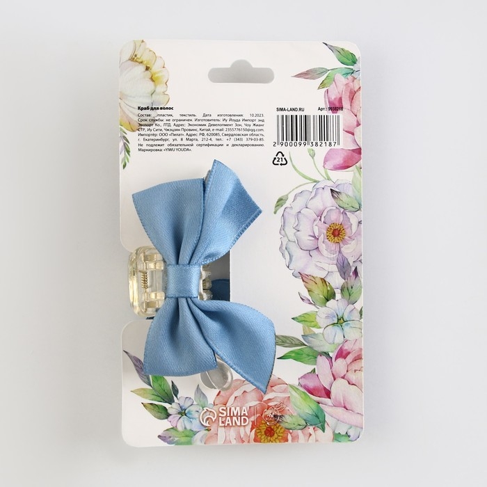 Краб для волос с бантом «Самой нежной», 6 х 4 х 3.2 см