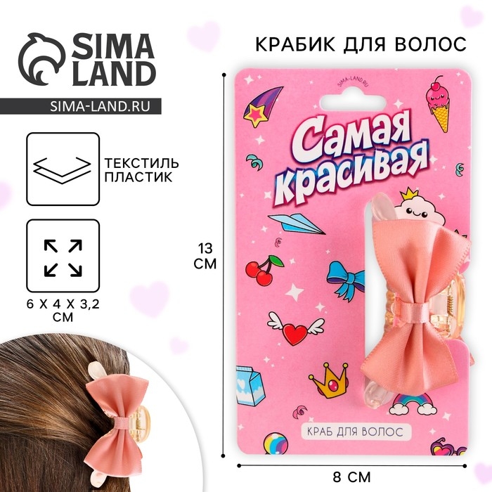 Краб для волос с бантом «Самая красивая», 6 х 4 х 3.2 см