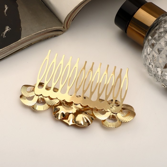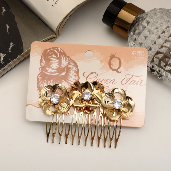 Гребень для волос "Либерти" цветок тройной, 5х8,5 см, золото