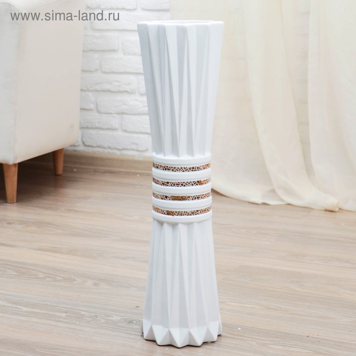 Ваза керамика напольная "Геометрия люкс" пояс, 16х60 см, белый
