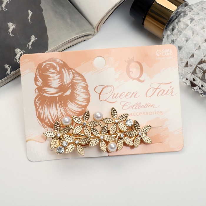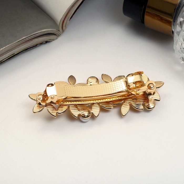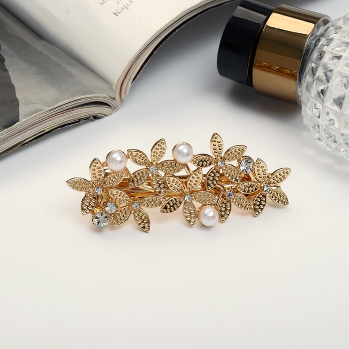 Заколка-автомат для волос "Либерти бусины" цветы, 6 см, золото