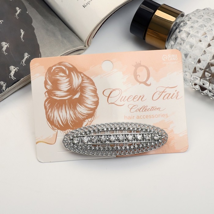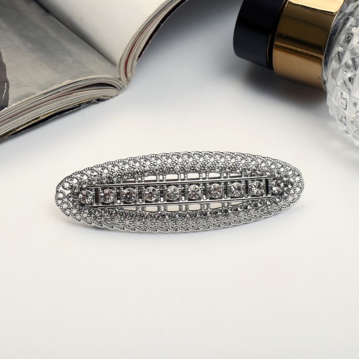 Заколка-автомат для волос "Бриана" овал, 7 см, серебро