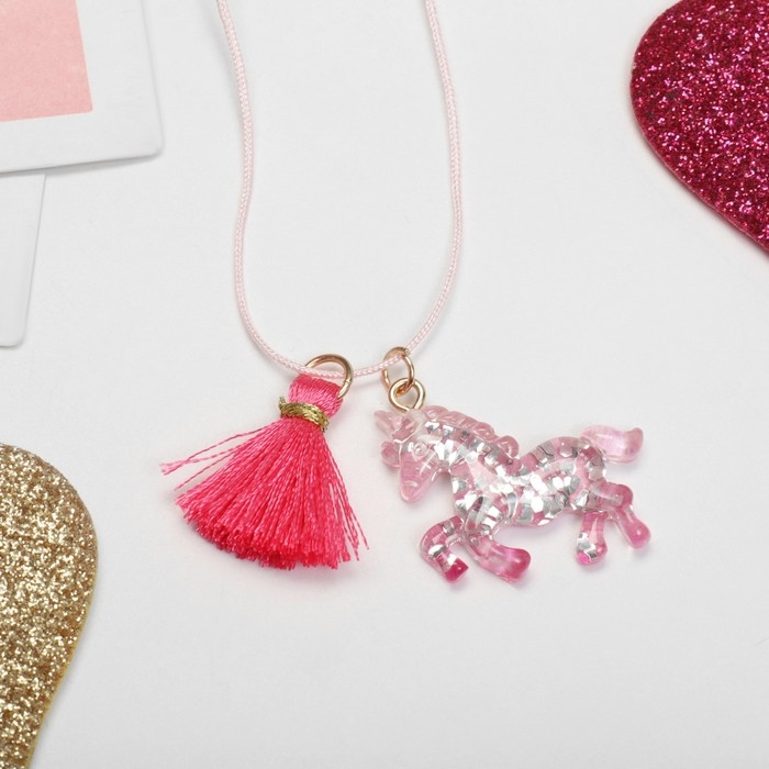 Кулон детский «Выбражулька» единорог, с кисточкой, цвет розовый