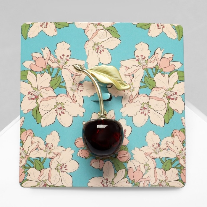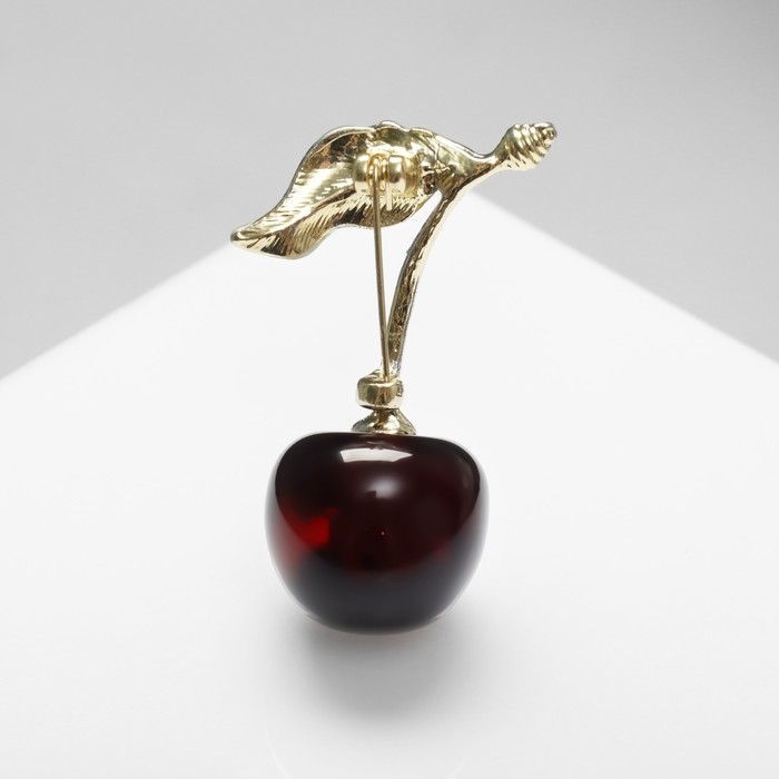 Брошь «Вишенка» с листочком, цвет бордово-зелёный в золоте