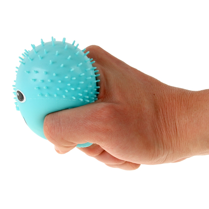 - При нажатии на игрушку снижается уровень стресса и развивается сила рук
