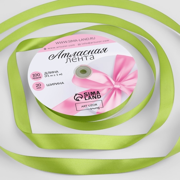 Лента атласная, 20 мм × 91 ± 1 м, цвет светло-оливковый №184