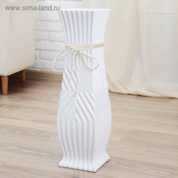 Ваза керамика напольная "Данте" зигзаг со шнурком, 15х60 см, белый