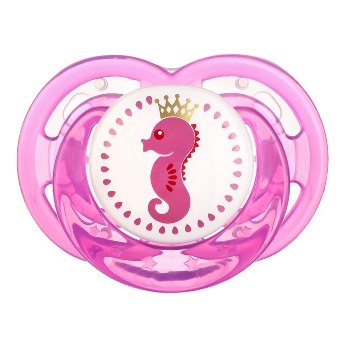 Соска - пустышка силиконовая ортодонтическая «Морской конек», от 0 мес., с колпачком, цвет розовый