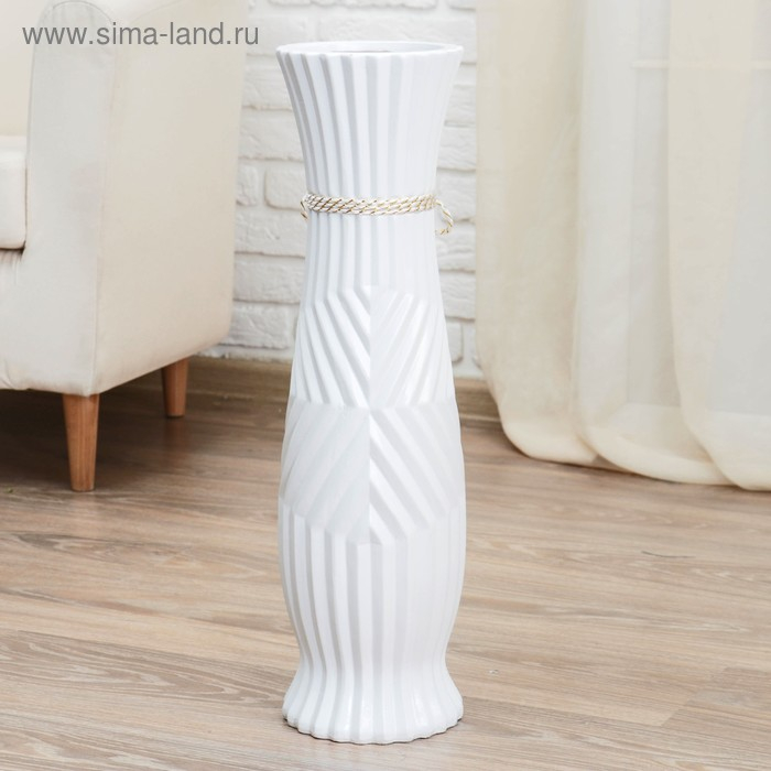 Ваза керамика напольная "Данте" зигзаг со шнурком талия, 16х60 см, белый