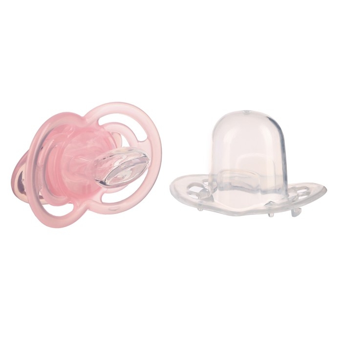 Соска- пустышка ортодотническая, с колпачком, +12 мес., розовый